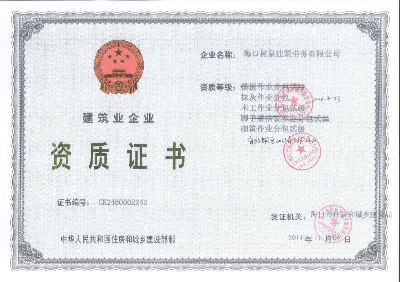 ??跇淙ㄖ趧沼邢薰境闪⒂?011年,公司位于???,其前身是一家專業建筑施工隊,自2004年即開始在海南從事建筑勞務施工。自成立至今,公司已經擁有一支科學管理、質量過硬、能打硬仗,搶工期的專業隊伍。能獨立承擔大中型工業與民用建筑 、室內外裝修、各類機電設備安裝工程。代表工程有??跒I海華庭、三亞時代海岸T01/02/04/05棟高層、合肥東?;▓@二期、陵水富力灣B區高層、三亞金中海(酒店)、瓊海大印經典花園、海口環球海景大酒店(四星級酒店,在建中)、陵水珍珠大廈(五星酒店)、??谌f達廣場、美蘭機場二期。